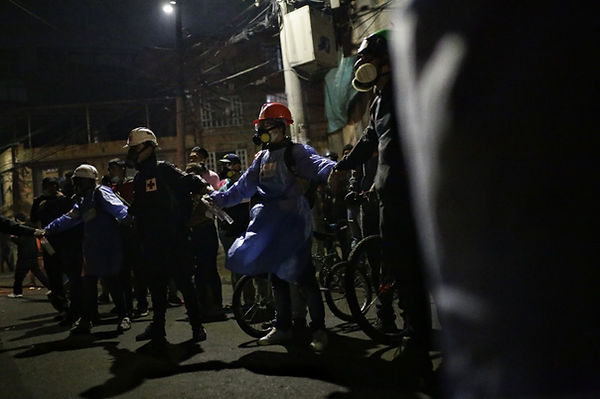 En una esquina y alejado de las luces está otro miembro de la misión médica, se quita la máscara de gas para fumarse el tercer cigarrillo de la noche. Asegura que es estudiante de medicina de una universidad privada. Pese a que vive casi al otro lado de la ciudad viene porque ha visto los excesos que se cometen en las protestas y la cantidad de heridos “es una salvajada, no podemos permitir que nos sigan matando”.